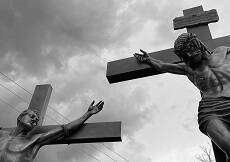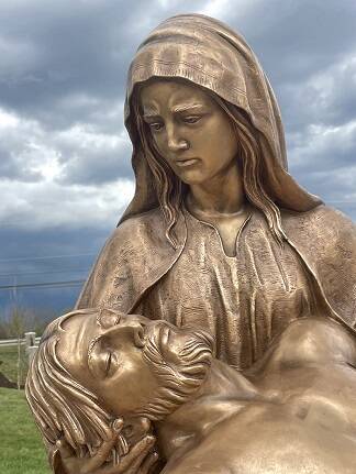 Lundergan’s Garden of Gethsemane is inspired by the garden of the same name that appears in the New Testament of the Bible, where Jesus Christ prayed before his arrest and crucifixion under the ruling of Pontius Pilate. The six-acre garden features a path that winds around life-size bronze statues depicting the Stations of the Cross, the events leading up to the crucifixion and ascension of Jesus, as described in the Bible. At the top of the hill, near the welcome center, a seven-story steel cross stands above the garden, reflecting sunlight onto Station 12 — the crucifixion — during the Easter season.