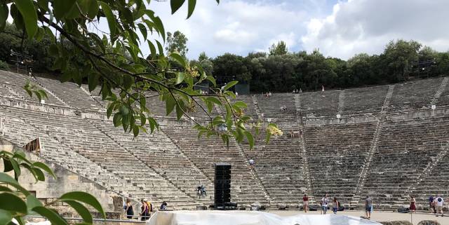 Dotting the 55 tiers of the Ancient Theatre of Epidaurus, in Greece, children and adults ascended the steps. Others maneuvered their way back down to the ground. Some strategically scattered themselves around and simply remained seated.